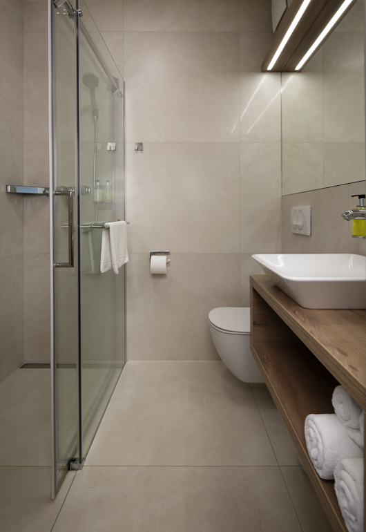 – bathtub with shower, toilette, sink and towels